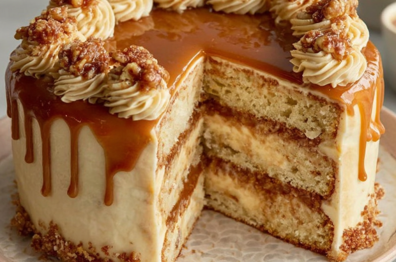 Pour finir en beauté, ajoutez un filet de caramel sur le gâteau refroidi. Cela apportera un supplément de saveur et une belle finition. N'hésitez pas à ajouter quelques éclats de noix ou de fruits pour une présentation encore plus élégante.